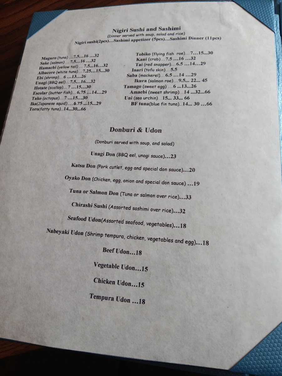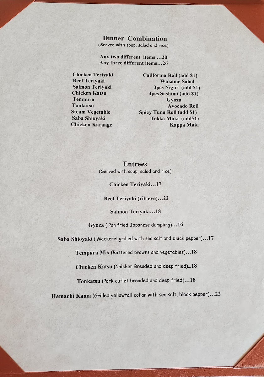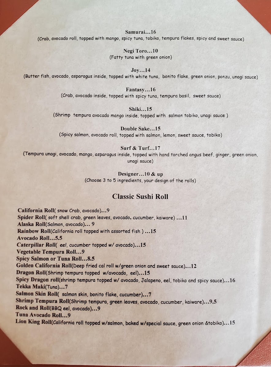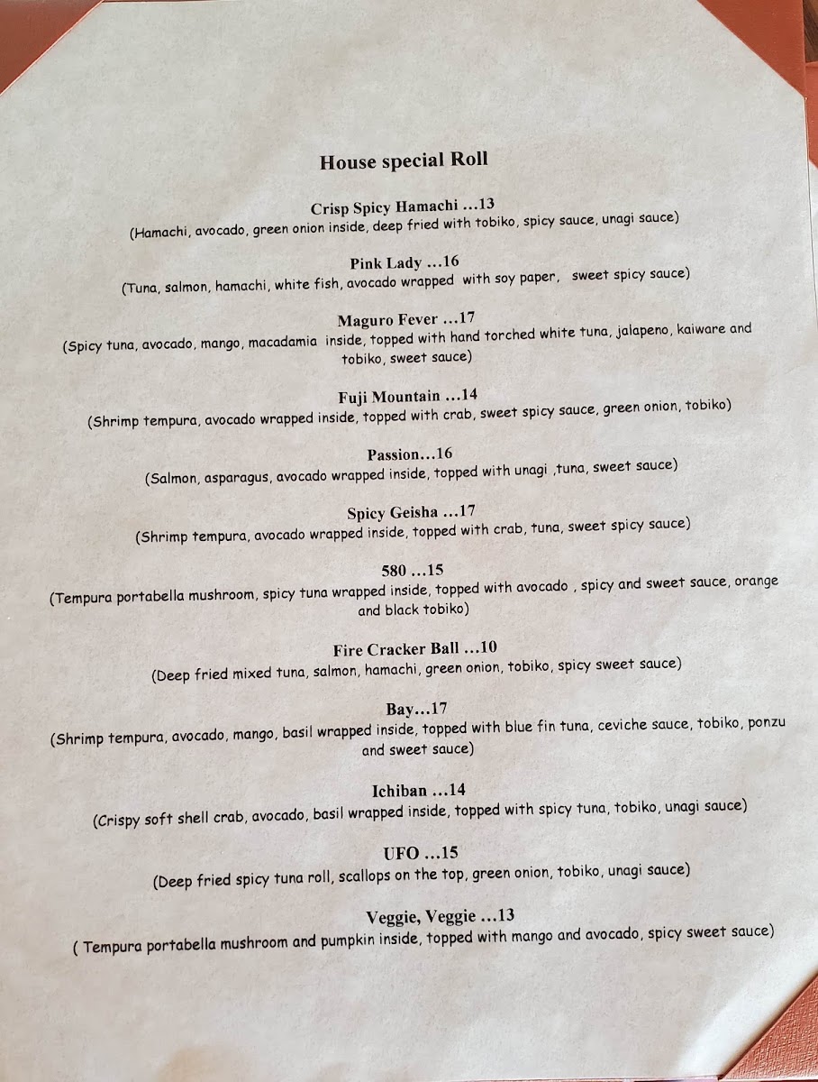 This Japanese and Asian restaurant menu offers a variety of traditional and signature sushi dishes alongside other classic Japanese fare. The menu is structured to provide a range of options including appetizers, sushi specialties, side orders, and more, allowing visitors to tailor their dining experience from light starters to full meals.